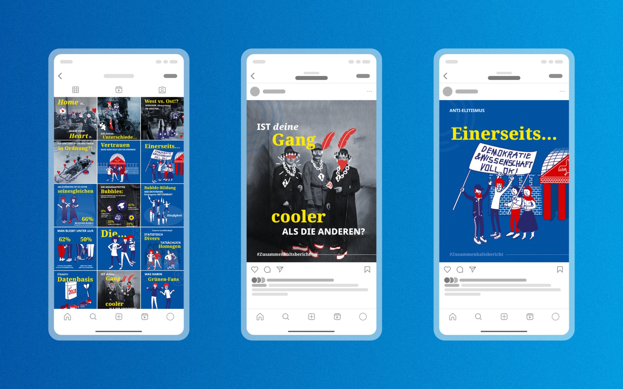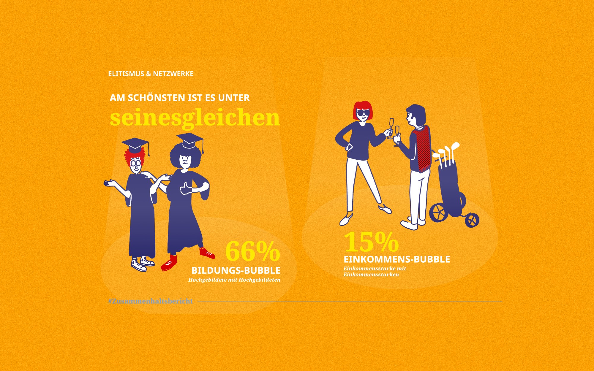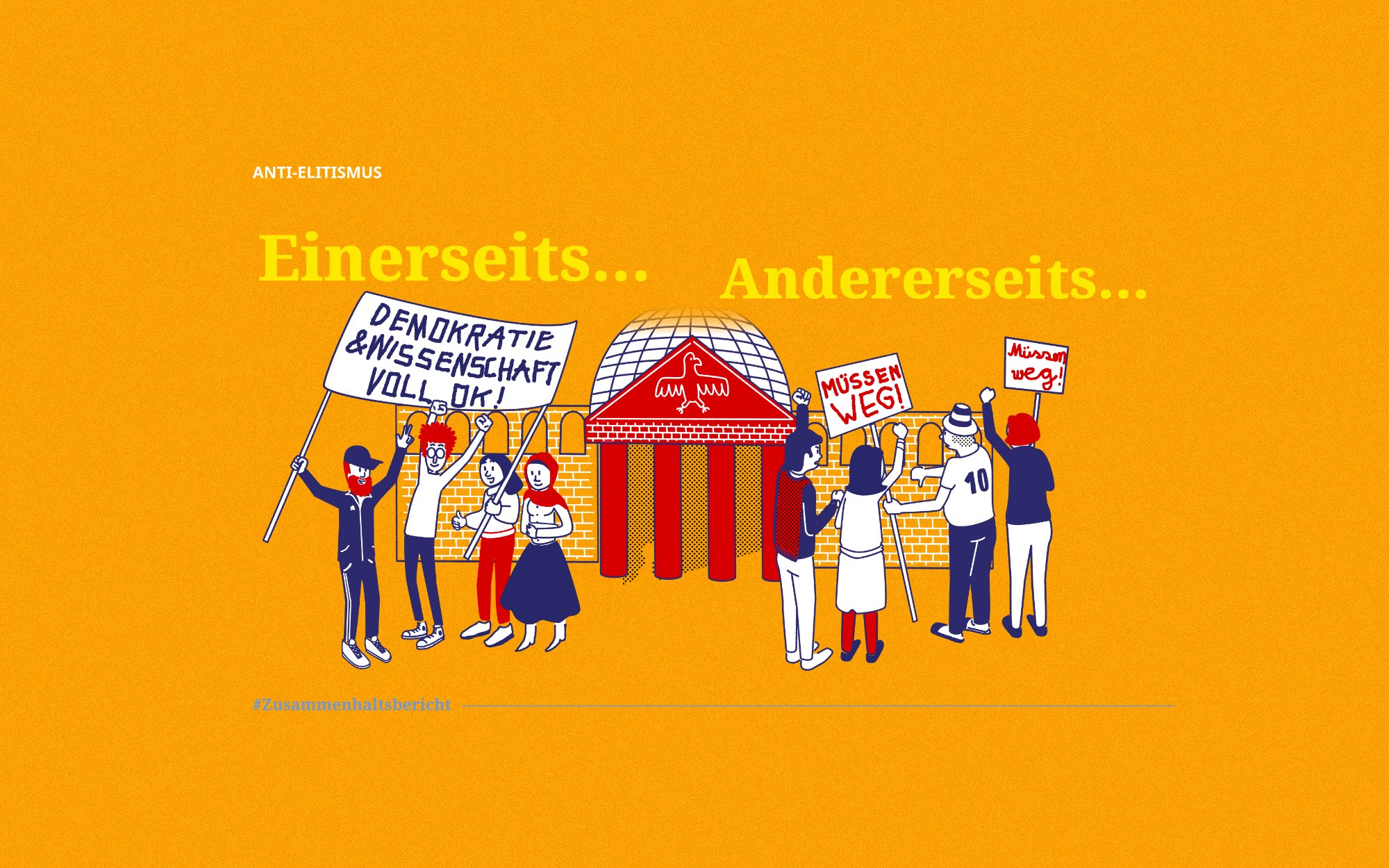 Gemeinsam mit den Forscher:innen des Forschungsinstituts Gesellschaftlicher Zusammenhalt (FGZ) haben wir zentrale Fragen und Ergebnisse des ersten FGZ-Zusammenhaltsberichts in liebevoll gestaltete Illustrationen und Infografiken gegossen. Sozialwissenschaftliche Grundbegriffe werden dabei dank der klaren Bildsprache ebenso anschaulich wie die quantitativen und qualitativen Ergebnisse der Erhebung.